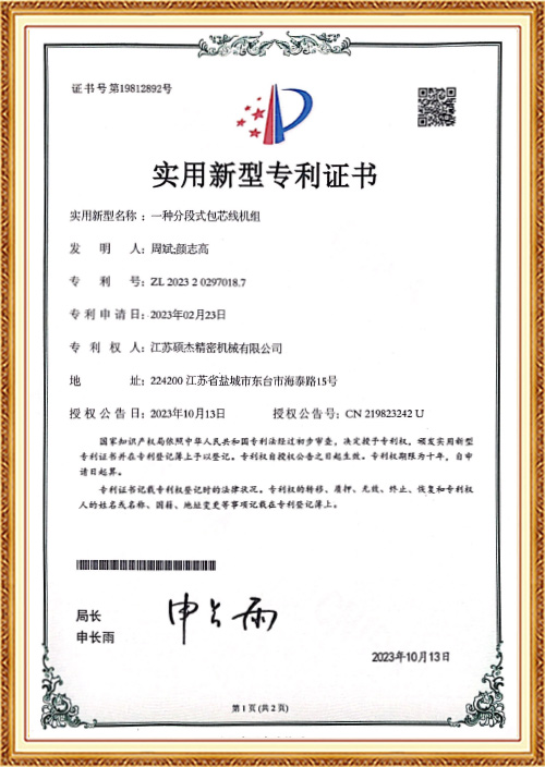 Đã phát triển máy quấn và dán dây xoắn lưng ba lõi đầu tiên để giải quyết các vấn đề về quy trình của khách hàng trong việc xoắn tần số cao. Việc xoắn, cộng với hiệu ứng xoắn ngược 100% của chính nó, giúp hiệu suất kiểm tra dây ban đầu tốt hơn.